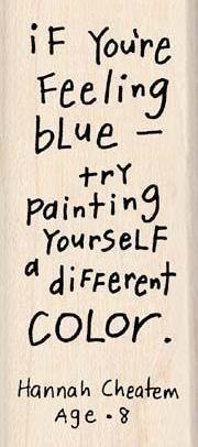 I noticed that this quote attributed to an 8-year-old named Hannah Cheatem was a very popular one and since sharing it I’ve been using it as an exploration tool as I move through my own day and with my art therapy clients. She said: “If you’re feeling blue – try painting yourself a different color.”